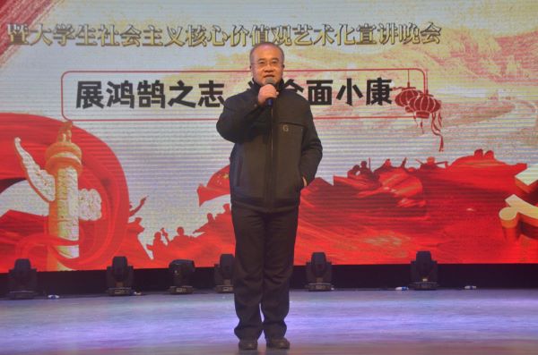 2020年12月15日晚,第六届“德·法·梦”剧场暨大学生社会主义核心价值观艺术化宣讲晚会在东方红校区田汉剧场成功举行。校党委书记彭小奇出席了宣讲晚会。