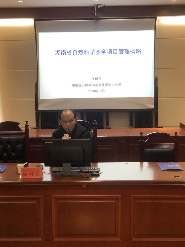 动员会上,李阳保以“湖南省自然科学基金管理工作概况”为题进行了专题讲座,通过对申报数量、立项率、所属单位、申报人情况等基本数据的对比,分析了2020年度湖南省自科基金的立项情况,同时介绍了2021年度省自科基金的申报受理情况,着重强调了形式审查的注意事项,并对下阶段工作安排进行了具体说明。任树言针对我省申报国家自然科学基金和湖南省自然科学基金的具体情况,结合具体申请案例,详细分析了自科基金项目申请中普遍存在的问题,并针对项目申请书的撰写给出了建议。在提问环节中,任树言就自科基金项目申报相关事项与参会教师进行了交流。
