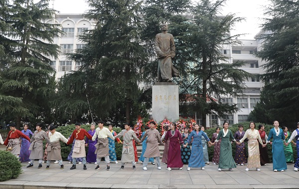 西藏山南班公费定向师范生旦增曲珍说,“很荣幸参加毛泽东诞辰纪念活动,作为当代大学生,我们要传承伟人精神,在学校勤奋好学,博览群书,将来回到西藏为基础教育做出贡献”。