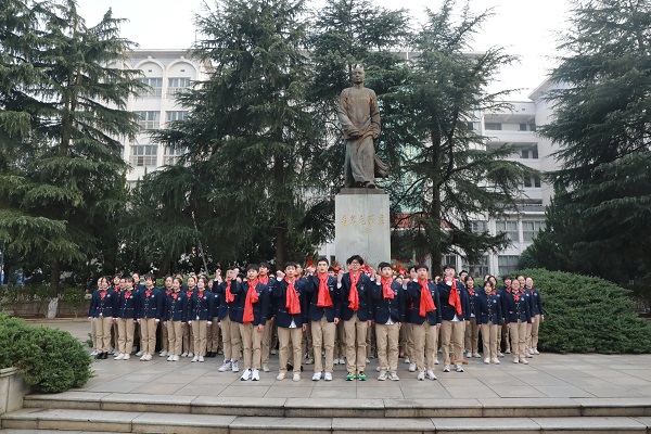 学校全体在家党政领导、全体处级干部、全体辅导员、纪念馆全体成员以及城南书院师生代表聚集在青年毛泽东铜像前,怀着无比崇敬的心情参加了活动。