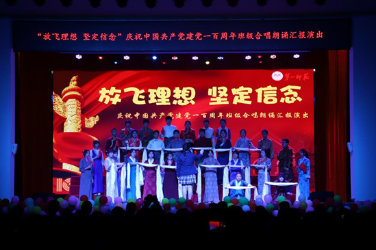 4月29日晚上,城南书院“放飞理想·坚定信念”庆祝建党一百周年合唱朗诵汇演,在城南书院校区大礼堂举行,校长童小娇、副校长曹兴出席了汇演活动。