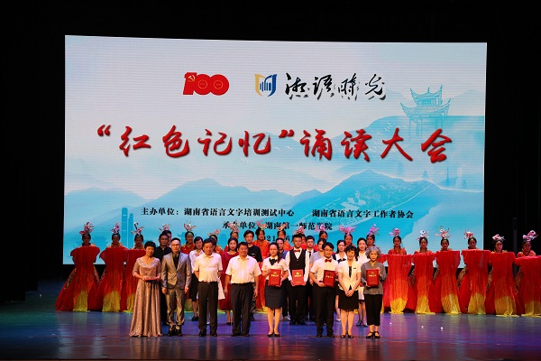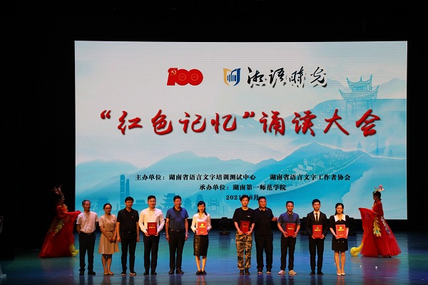 忆往昔峥嵘岁月,看今朝神州光辉。6月29日,“湘语时光•红色记忆”2021年度诵读大会在开元东方红校区田汉剧场成功举办。校党委书记罗成翼、校长童小娇、副校长周发明、江正云、蒋蓉,省语言文字培训测试中心主任冯传书、副主任鄢明芳、白昕,湖南省语言文字工作者协会常务副会长高广安、湖南省语言文字工作者协会副会长胡承教,常德市教育局副局长苏宏元,相关高校和测试站的领导出席活动,开元师生代表600余人,欢聚一堂,共享语言盛宴。