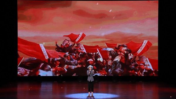 诵读大会在激昂澎湃的交响乐与合唱《东方红》中拉开序幕。潇湘电影集团党委委员、副总经理,湖南电视台潇湘电影频道总监,国家二级文学编辑李红,湖南卫视新闻主播何娟,湖南广播电视台播音指导曾致,湖南艺术职业学院播音主持专业讲师杨雁带来示范朗诵《心之力(节选)》。现场参赛的14个作品26位选手满怀激情,用慷慨激昂的声音,带领大家重温中国共产党成立一百年来经历的苦难与辉煌、奋斗与荣耀,精彩演绎和抒发了对祖国的讴歌与热爱,给现场听众带来了心灵的浸润和精神的洗礼。开元音乐舞蹈学院师生也为大会奉献了精彩纷呈的歌舞表演。