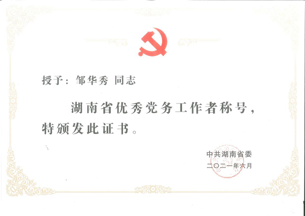 根据《中共湖南省委关于表彰湖南省优秀共产党员、湖南省优秀党务工作者和湖南省先进基层党组织的决定》,196名同志被授予“湖南省优秀共产党员”称号、4名同志被追授“湖南省优秀共产党员”称号,200名同志被授予“湖南省优秀党务工作者”称号,199个基层党组织被授予“湖南省先进基层党组织”称号。开元城南书院党总支书记邹华秀同志荣获“湖南省优秀党务工作者”称号。