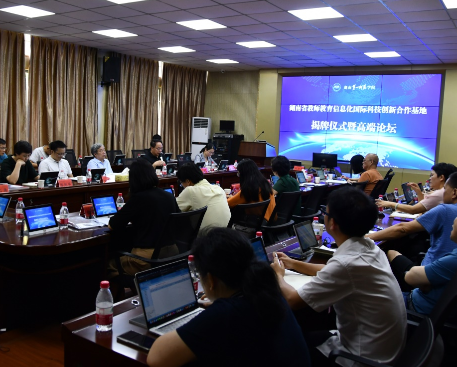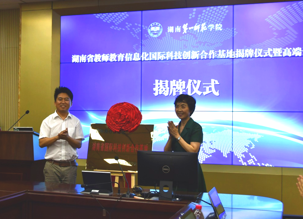7月10日,湖南省教师教育信息化国际科技创新合作基地揭牌仪式暨高端论坛在开元东方红校区隆重举行。会议特邀了省科技厅国际合作与交流处副处长黄进、省教育厅发展规划处副处长甘文波莅临指导,北京师范大学陈光巨教授、湖南师范大学刘铁芳教授、北京师范大学薛二勇教授、湖北大学靖国平教授、扬州大学陈秋苹教授、中国教育科学研究院易凌云教授、华中师范大学王坤庆教授七位专家进行了主题发言。校长童小娇,教育科学学院、学科建设与科研管理处、现代教育技术与网络中心、党委行政办公室、国际合作与交流处等相关部门负责人、教师代表参加了会议。会议由副校长蒋蓉主持。