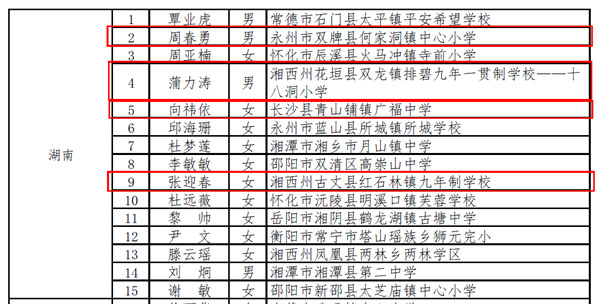 日前,经省级教育行政部门推荐、专家审核和遴选、教育部官网公示等环节,教育部教师工作司、中国教师发展基金会最终确定300人入选2021年乡村优秀青年教师培养奖励计划,湖南省有15名教师入选,其中开元有周春勇、蒲力涛、向祎依、张迎春4名毕业生入选。