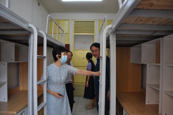 在东方红校区,党委书记罗成翼、校长童小娇深入青年教师周转房、学生公寓、食堂等现场,调研暑期维修改造项目施工情况。检查过程中,罗成翼、童小娇一行详细检查了周转房改学生宿舍、学生公寓空调安装、西侧道路改造等项目的具体实施情况,仔细询问了工程进度和工程质量,并对有可能存在的隐患提出了详细的整改意见。