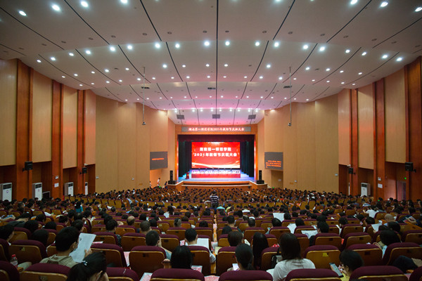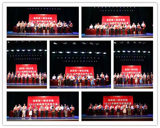 上午9时,大会在庄严的国歌声中拉开序幕。校长童小娇对全校教师致以节日问候,并对荣获湖南省高校首届“最美思政课教师”、“最美辅导员”的谭凯、陈阳老师表示热烈祝贺。校领导李克勤、曹兴、周发明、李昱、江正云分别宣读了2021年学校优秀教师、优秀教育工作者、学校第一届余彭年杰出教师教学奖、第四届“师德师风先进个人”名单以及近三年获得省部级以上表彰、省级以上科研成果奖、国家级科研项目获奖名单,并为他们分别颁奖。李晖旭、禹晗老师作为获奖教师代表先后上台发言。