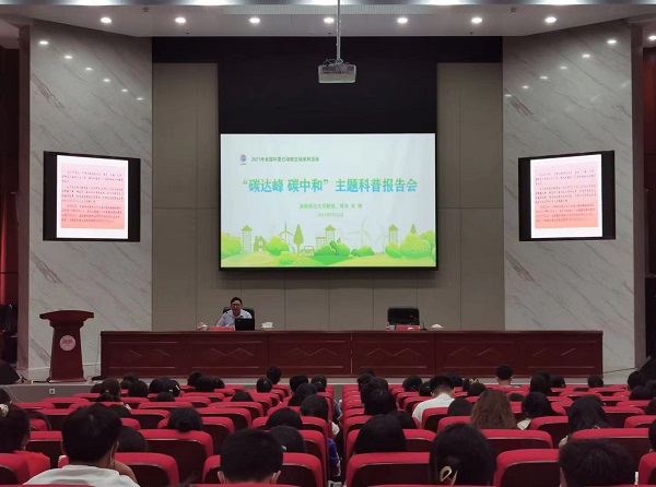 在“碳达峰、碳中和”主题科普报告会上,湖南师范大学教授朱翔所作的《以碳达峰、碳中和支撑实现中国方案》报告赢得了现场300余名听众的阵阵掌声,共有33万人通过“科普湖南”微信公众号观看报告会直播。