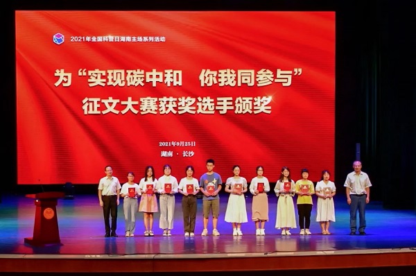 本次主场活动还通过网络进行了宣传预热,并且开辟了线上直播和互动渠道,吸引52万名公众参与。如“实现碳中和 你我同参与”主题征文活动,共收到全国8个省,20多个市的投稿883篇,评选出优秀作品86篇;科普湖南“碳达峰、碳中和”线上答题赛,累计答题2万多人次。