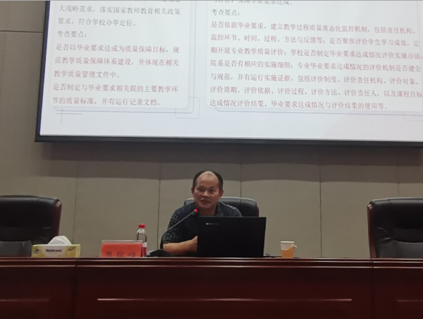 周险峰教授以“师范专业认证的理念及考查要点”为题,围绕师范认证与评估的区别、师范专业认证理念、师范专业认证考查点分布、师范专业建设中的短板等方面系统阐述了师范类专业认证的任务与要求,通过案例分享介绍了其他高校的经验做法。周教授从培养目标、毕业要求、课程与教学、合作与实践、师资队伍、支持条件、质量保障、学生发展八个方面进行了认证要求的详细解读,并对开元师范类专业认证工作提出了宝贵的意见和建议。
