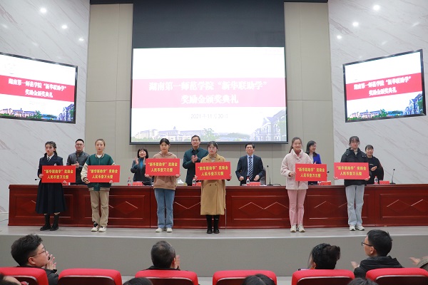 蒋蓉宣读了《关于表彰2021年度“新华联助学”奖励金获得者的决定》。新华联集团嘉宾、学校领导和校友联络服务中心、学生工作部(处)的负责同志为获得2021年度“新华联助学”奖励金的同学们颁发了荣誉证书。学生代表商学院2018级旅游管理1班徐琦发表获奖感言。