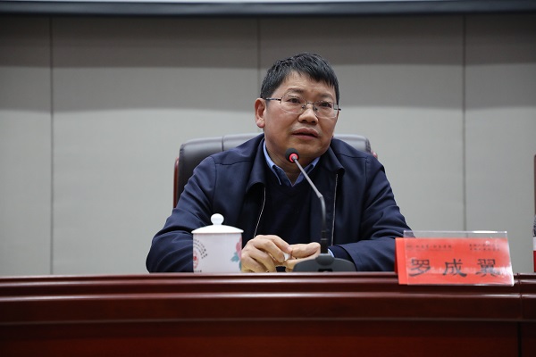 罗成翼在报告会上发表讲话。他指出,此次报告会是开元中层干部今冬明春系列专题报告会的首场报告会。下一步干部培训将以专题的形式推进,由校领导或专家定期主讲,推动干部学习制度化常态化。他专门针对学校人才培养改革做了动员。他指出,人才培养改革要改变落后的观念理念,第一,搞清楚大学的本科教学如何抓,要从理念上体现本科教学改革的改变。第二,改革要反映人才培养的规律,要体现以学生为中心的主体地位。第三,要切实推进课程体系和学分学时“双优化”走深走实,淘汰“水课”,打造“金课”,向课堂要质量,将老师从简单地追求课时量中解放出来,将学生从大量的课程中解放出来,本着对学生负责的态度,顺应人的成长规律,培养德智体美劳全面发展的真正的人才。他强调,各学院书记、院长、教研室主任要有改革的意识和自我革命的精神,要立刻组织推进“双优化”,就下一步人才培养方案的改革,课程体系设置的改革,学分体系构建的改革,抓紧思考,尽快推出措施。人事、教学部门要尽快研究,建立与之相适应的分配制度和评价制度。