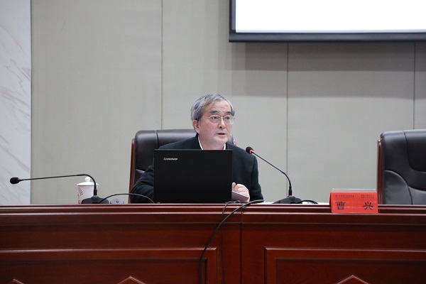 曹兴以“抢抓机遇 攻坚克难 奋力开创学校科技创新工作新局面”为题,分析了世界科技强国建设的时代背景,阐述了高校在世界科技强国建设中的作用,反思了开元当前科技创新工作中存在的主要问题,提出了学校“申硕改大”、优化学科专业结构、构建新型学科体系、实施人才发展新策、加强科研平台建设、培育高端科研成果、深化科研体制改革等七大科技创新工作主要任务。