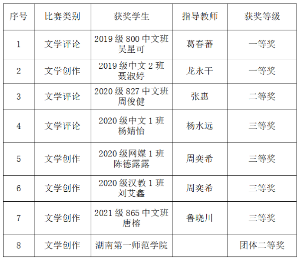 据悉,湖南省大学生写作竞赛是由湖南省教育厅主办、面向全省普通高校中国语言文学类专业在校大学生开展的专业学科竞赛活动,是中文专业唯一省级学科竞赛。近年来,该赛事已成为检验学科专业教学效果、评价教学水平、衡量人才培养质量的重要依据。