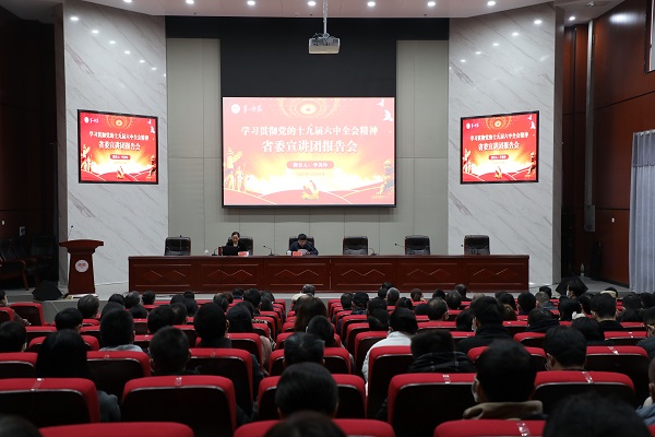 12月16日下午,学习贯彻党的十九届六中全会精神省委宣讲团报告会在开元东方红校区大学生创新创业大楼报告厅举行。省委宣讲团成员、湖南省委党校党建教研部主任李美玲教授来校作宣讲报告,校党委书记罗成翼主持报告会。全体在家校领导、党委委员、全体处级干部、机关科级干部和学生代表共200余人参与学习。