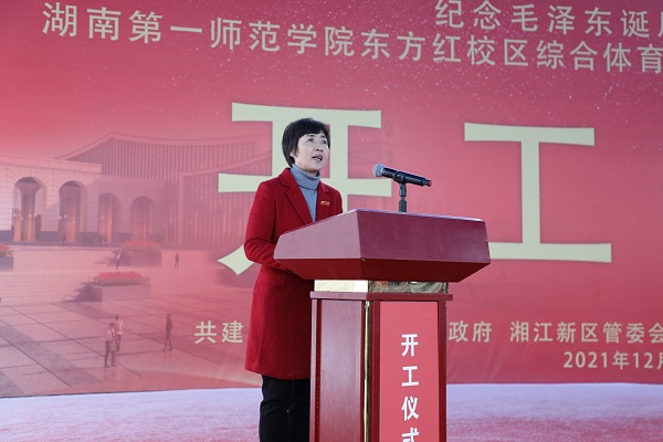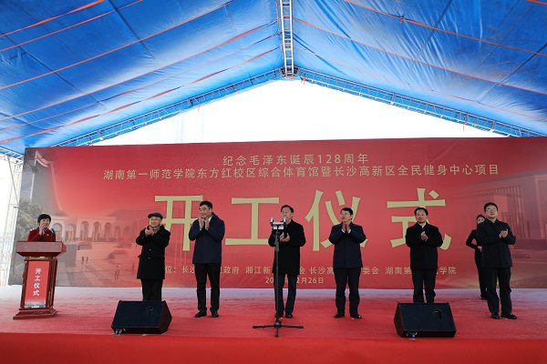 罗成翼在致辞中表示,在我们伟大校友毛泽东主席诞辰128周年之际,我们在此举行项目开工仪式,对学校提升办学育人水平、促进学生健康成长,对积极履行社会责任、服务高新区全民健身都是一件大喜事。项目建成后,将成为Ky开元集团重要的教育教学、体育训练基础设施和高新区服务周边群众体育运动的重要场所,承担着教育教学与服务社会双重职能。我们将以体育馆的开工建设为契机,进一步把牢“立德树人”这个根本任务,做好高校人才培养工作;进一步写好“建设四个一师”这篇文章,推动学校高水平、高质量发展;进一步扛起社会责任这份重任,推动地方社会经济文化发展,为服务省第十二次党代会提出的“强省会战略”,建设现代化新湖南作出更大贡献。