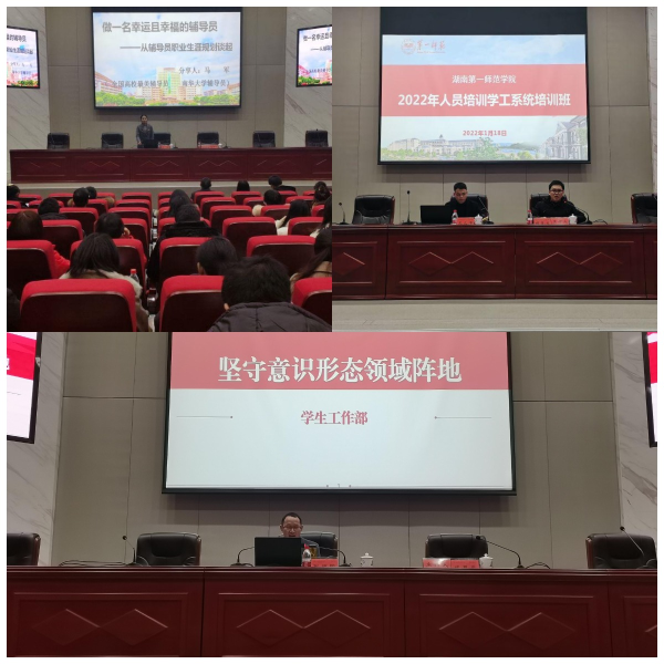 学工系统在百熙楼228会议室举行分班培训及交流会。2021年度全国“最美高校辅导员”、南华大学辅导员马军老师以《做一名幸运且幸福的辅导员》为题,围绕“一个中心、两条底线、三种方法、四个坚持、五有老师”等五个方面,结合自身扎实的思政理论功底,生动鲜活的辅导员工作案例,26年辅导员工作积累的丰富经验,阐述了辅导员如何更好地开展学生工作。湖南省高校易班发展中心主任王正坤以《让网络思政教育“潮起来”——基于易班平台开展大学生网络思政教育路径探讨》为题,从运用易班平台,强化网络思政教育的吸引力和引领力;强化“互联网+思政”创新,做好网络育人工作;让网络思政工作“活起来”“潮起来”,使思政工作更有针对性和亲和力等方面,进行了系统指导。党委学生工作部部长张福国结合当前意识形态的斗争态势,以《坚守意识形态领域阵地》为题开展培训,强调了意识形态的重要性,并就如何坚守意识形态领域阵地,掌握意识形态领域的领导权、管理权和话语权,提出了指导意见。
