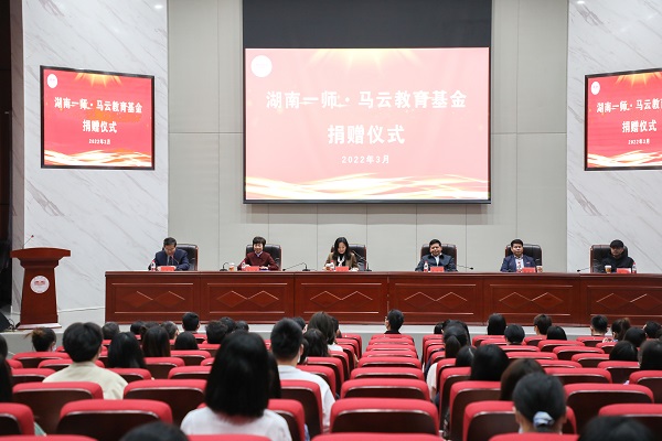 童小娇致辞。她指出,多年来,学校与马云公益基金会一直有着密切、友好的合作。作为首届合作院校,开元与基金会于2017年签订了合作框架协议,共同推动“马云乡村师范生计划”的实施。截至2021年,开元1名校友入选“马云乡村校长计划”,4名校友入选“马云乡村教师计划”,165名毕业生入选“马云乡村师范生计划”。马云公益基金会在开元设立“湖南一师·马云教育基金”,不仅体现了马云公益基金会高度的社会责任感,反映了基金会情系师范教育、引领公益风尚的奉献精神,更标志着双方合作得到进一步拓展和深化。希望获得捐赠的老师和同学化感恩之心为报国之志,奋力求学,潜心育人,以优异成绩、过硬本领报效祖国、服务社会。