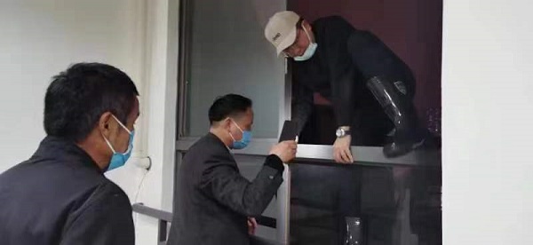 4月16日晚上8点,大雨滂沱。基建与后勤处处长周大庆还在从学校赶回家的路上,就接到图书馆馆长赵奇钊的报“警”电话:图书馆4楼外墙渗水,室内走廊积水严重,请求处理!周大庆二话没说,立马调转车头赶回学校 ,紧急召集水电维修科人员赶到图书馆4楼。因墙壁渗水,地面已积水横流,周大庆和众人快速清扫完地面积水。他担心渗水损坏墙体会影响正在图书馆自习的学生,完全不顾个人安危,爬到窗户外面,找到渗水管道路径并迅速做好相应处理,堵住了雨水灌渗,及时处置了渗水给学生自习带来的不便。