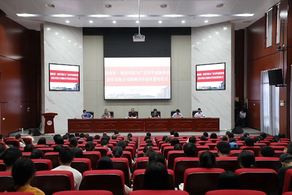 吴泽林在讲话中指出,风华高科与一师秉承“优势互补、资源共享、互惠双赢、共同发展”的原则,坚持“多元、融合、开放、共享”的共建理念,进行校企产学研合作,希望以此次签约为契机,进一步整合优质资源、增进优势互补,围绕人才培养、成果转化、技术创新、基地共建、项目合作等领域开展全方位、宽领域、多模式的合作,促进教育链、人才链、产业链、创新链深度融合,有机衔接,精准对接,共同为我国的教育事业和电子元器件产业的发展贡献力量。他表示,37年前,我在一师读书,今天故地重游,倍感亲切,无限感慨。祝愿母校再创美好未来,风骚再领新时代! 期待双方的合作之路越走越宽、越走越好,结出丰硕的成果!
