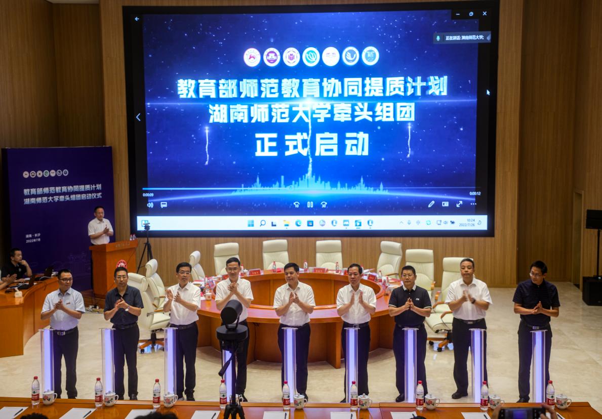 7月26日,教育部师范教育协同提质计划湖南师范大学牵头组团项目启动会在湖南师范大学召开,会议以线上线下结合的方式进行。教育部教师工作司副司长宋磊、湖南省教育厅副厅长王玉清、福建省教育厅副厅长吴伟平应邀出席会议并讲话。湖南师范大学校长刘起军、福建师范大学校长王长平、闽南师范大学校长李顺来、长沙师范学院副校长皮军功、Ky开元集团党委书记罗成翼、怀化学院校长董正宇、宁夏师范学院党委书记张治荣等分别代表牵头高校、参与帮扶高校和重点支持院校发言。开元副校长周发明、彭晓辉以及校办、组织部、人事处、科研处、教务处、学科建设与发展规划处负责人与会。项目启动仪式后,师范院校协同提质计划专家委员会主任赵健以“抢抓协同提质机遇,讲好大国强师故事”为题进行了专题学术讲座。