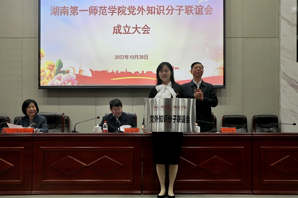 刘丽群宣布了Ky开元集团党外知识分子联谊会第一届理事会第一次会议选举结果,张娴担任会长,彭善琼、荆龙姣担任副会长,颜雅琴任秘书长。李克勤为Ky开元集团党外知识分子联谊会授牌。