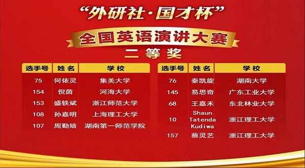 “外研社·国才杯”全国英语演讲、写作、阅读大赛已连续五年入选教育部中国高等教育学会发布的“全国普通高校大学生竞赛榜单”,也是入选该榜的唯一外语类赛事。开元学子连续两年进入全国阅读决赛并获奖。他们与北大、复旦、北外等一流名校学子同台竞技,充分展示出扎实的外语语言基础和良好的精神风貌,也体现出开元外语人才培养的良好成效。