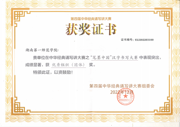 近日,湖南省语言文字工作委员会、湖南省教育厅公布2022年中华经典诵写讲大赛评选结果,开元在国家级和省级赛事中均创佳绩。其中,在国家语言文字工作委员会、教育部主办的全国第四届中华经典诵写讲大赛之“笔墨中国”汉字书写大赛中,荣获优秀组织(团体)奖;在湖南省语言文字工作委员会、湖南省教育厅主办的2022年湖南省中华经典诵写讲大赛中,荣获“笔墨中国”汉字书写大赛教师组一等奖3个、“诵读中国”经典诵读大赛本科生与研究生组一等奖1个。