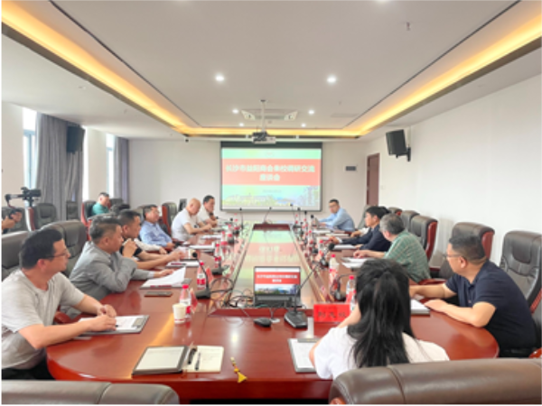 5月5日上午,长沙市益阳商会党委书记、会长吴长云,执行会长张可为,常务副会长李建平、彭华、黄庆玺,秘书长杨一艺一行6人来校考察交流。校党委书记罗成翼,党委委员、副校长曹兴出席交流会。交流会在百熙楼605举行,由曹兴主持。
