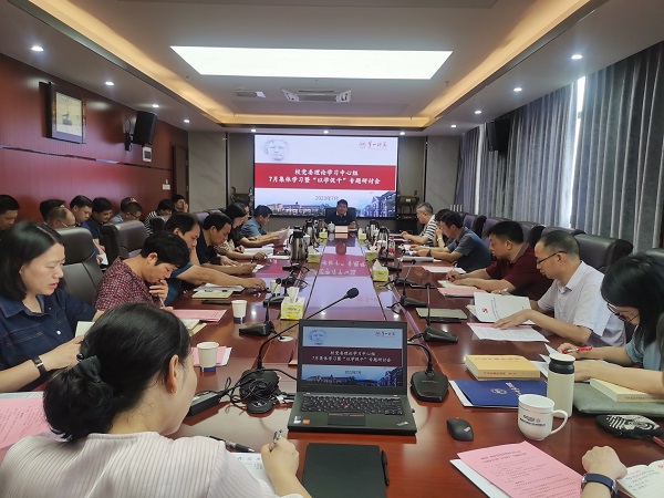 7月27日,学校党委理论学习中心组开展7月集体学习,聚焦“以学促干”这一主题进行专题研讨。全体在家校领导、主题教育领导小组成员及各组组长、各二级党委书记参加学习。校党委书记罗成翼主持并总结讲话。
