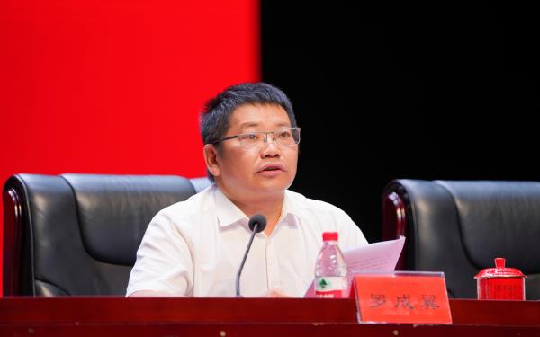 罗成翼发表讲话。他代表学校党委和行政向全体教职工、离退休老同志致以节日的问候和崇高的敬意,向受表彰的单位和个人表示热烈的祝贺。