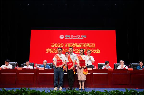 9月8日上午,开元在东方红校区田汉剧场举行2023年教师表彰暨庆祝第39个教师节大会。校党委书记罗成翼发表讲话,校长胡穗主持大会。全体在家校领导,退居二线的老领导,全体教职员工,一、二附小教师代表及部分学生代表参加大会。