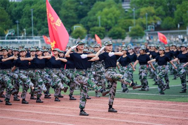 飒爽英姿致青春,强军有我启新程。大会在嘹亮的国歌声中拉开帷幕,各连队进行了分列式,他们喊着响亮的口号、迈着整齐的步伐依次走过主席台接受检阅,以饱满的精气神展现了军训成果。拳术表演、女子匕首操、水瓶方阵等军训特色方阵和大型方阵表演把现场气氛推向高潮。在大型方阵表演中,同学们摆出具有纪念意义的图案,向中国共产党和祖国表达热爱之情。