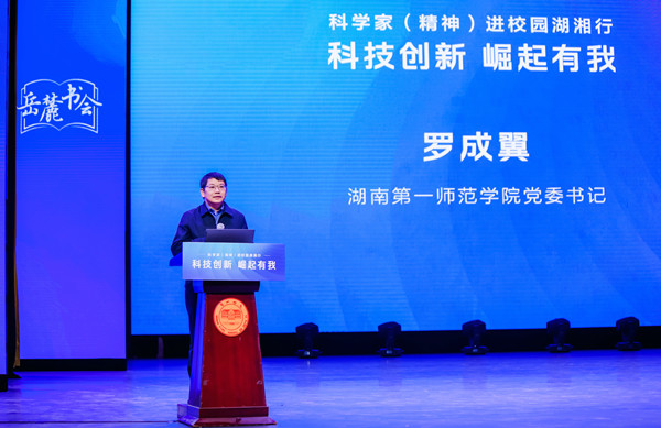 罗成翼发表致辞,代表学校向与会嘉宾表示热烈欢迎。他指出,湖南正在着力打造“三个高地”、践行“四新”使命,每一个高地的打造、每一项使命的践行,都离不开科技人才的加持和赋能。开元主动融入“教育强省”和“三高四新”战略,聚焦智造强省、数字湖南和研发长沙,重点面向湘江新区先进装备制造、电子信息和新材料等三大千亿产业集群,大力拓展新工科,打造“数、信、机、电、智”一体的专业群,既培养扎根基础教育的“大先生”,又培养具有科学家精神的“大工匠”,为科教强省、教育强省培养高质量的人才。他希望广大青年学子以此为契机,大力传承老一辈科学家以身许国、心系人民的光荣传统,自立自强,勇攀高峰,把爱国之情、报国之志融入实现高水平科技自立自强的不懈奋斗中,为实现中华民族伟大复兴作出自己应有的贡献。
