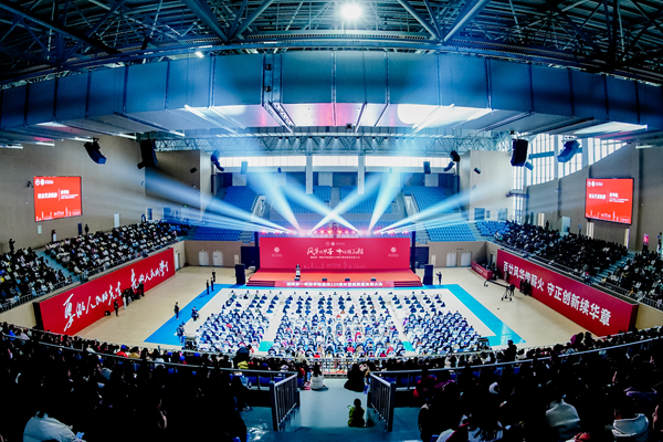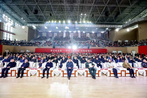 今日的一师,碧空如洗,冬阳和煦,鸾翔凤集,吉庆祺祥,新落成的综合体育馆会场,“牢记毛主席‘一师是个好学校’的殷殷嘱托 奋力谱写新时代新征程一师之好新篇章”主题标语格外醒目,“要做人民的先生 先做人民的学生”、“百廿风华传薪火 守正创新续华章”横幅标语分列会场两侧,催人奋进。