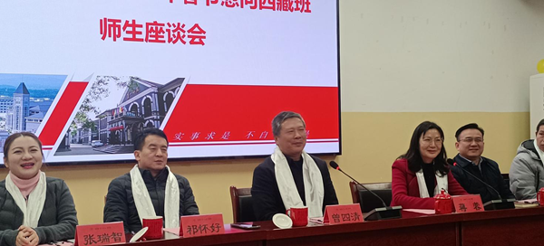 2月1日上午,省教育厅二级巡视员曾四清来开元看望慰问西藏山南师范班师生,开元党委委员、副校长蒋蓉参加并主持了慰问座谈会。省教育厅民族教育处处长祁怀好,城南书院负责人,西藏山南师范班全体师生参加了座谈会。