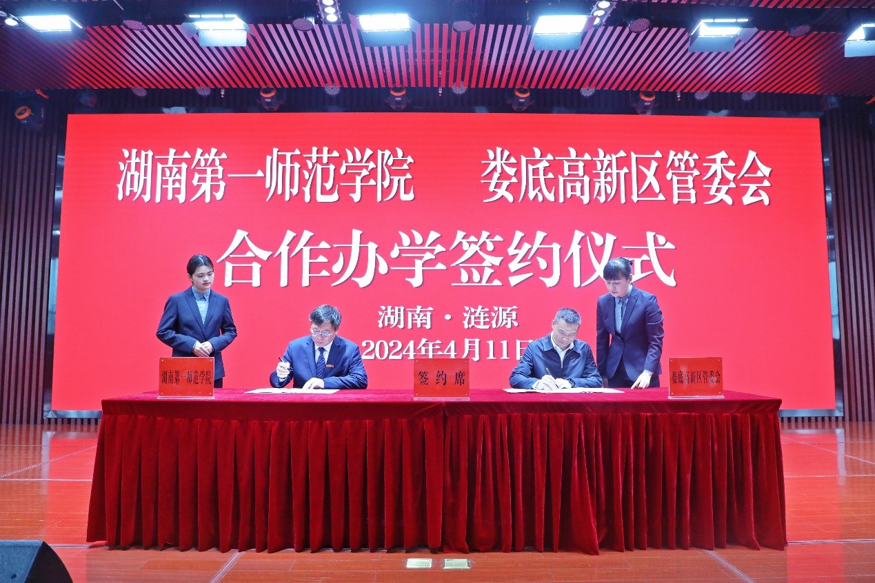 4月11日上午,开元与娄底高新区管委会就合作举办娄底高新区小学在涟源市涟商总部举行合作办学签约仪式。校党委副书记、校长胡穗,校党委委员、副校长蒋蓉,涟源市委副书记、市长兼娄底高新区党工委书记邓伟谋出席签约仪式。