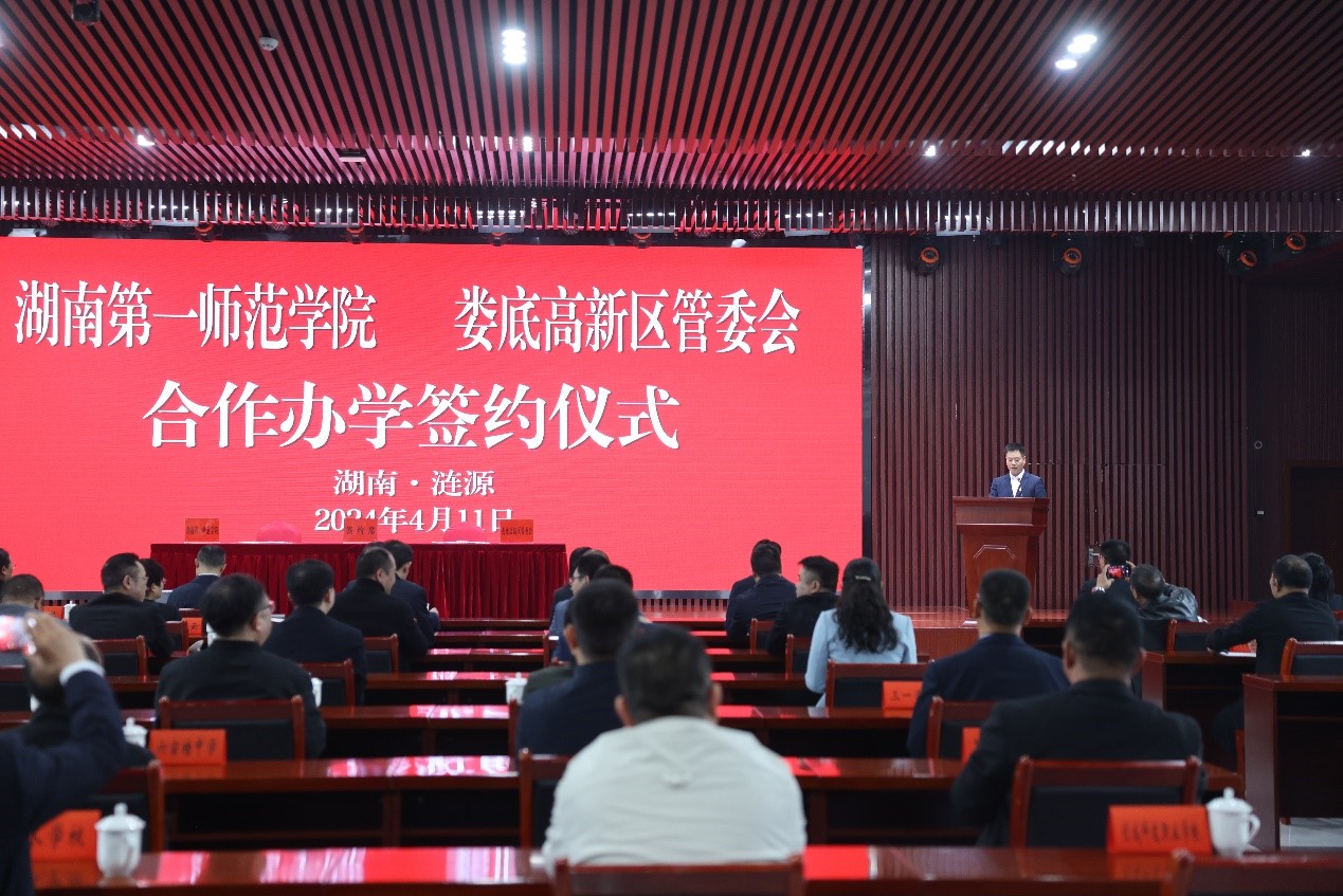 胡穗在签约仪式上发表讲话。他指出,此次签约是开元首次到长沙以外的地区合作办学,开元将用最先进的办学理念、最强的师资力量、最优的教育资源和最具一师特色的办学模式赋能此次合作办学,用最短时间和最高效率为涟源、为娄底高新区打造一所具有“第一师范基因、一师附小品质、娄底涟源特色”的品牌学校,成为娄底基础教育最闪亮的名片。