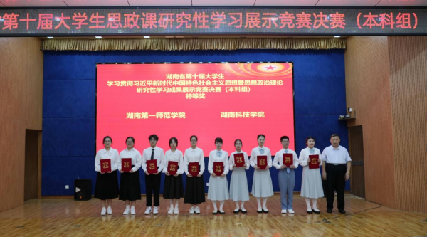 6月1日,湖南省第十届大学生学习贯彻习近平新时代中国特色社会主义思想暨思想政治理论课研究性学习成果展示竞赛决赛(本科组)在湖南工业大学举行,由马克思主义学院2022级思政1班毛阳慧、杨鑫如、庄倩仪、陈潭雨、喻佳鹏五位同学组成的研究性学习小组,其汇报作品《以全人类共同价值引领新时代青年共建人类命运共同体》以小组第一的成绩荣获本科组特等奖。除特等奖外,开元此次研究性学习竞赛还获得二等奖4项,三等奖2项,获奖等级和数量均名列我省高校前列。