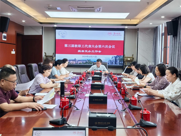 6月21日下午,开元第三届教职工代表大会第六次会议提案交办工作会在东方红校区百熙楼713会议室召开。校党委副书记、校长胡穗出席,校工会负责人、第三届教代会提案工作委员会全体委员、相关提案承办部门负责人参加了本次会议。会议由校工会常务副主席袁向荣主持。