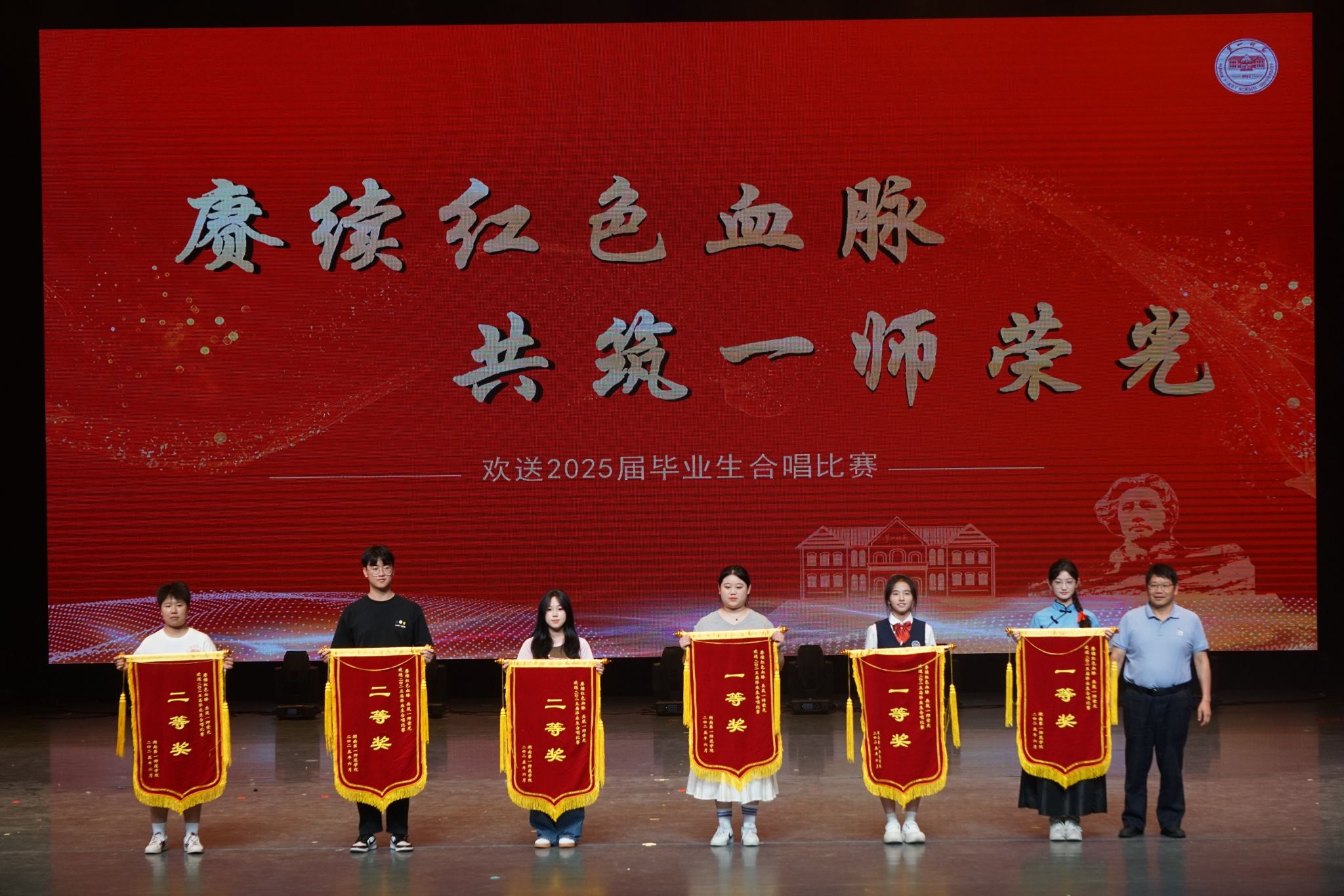 5月29日晚,学校“赓续红色血脉 共筑一师荣光”2025届毕业生合唱比赛在田汉剧场举行。校党委书记罗成翼,校党委委员、副校长周发明、彭晓辉、蒋蓉,副校长石元泉,各职能部门、二级学院教师代表,以及2025届毕业生、在校学生代表共计千余人齐聚一堂,以悠扬的歌声寄托对毕业生的美好祝福,同时表达毕业生对母校的感激之情。
