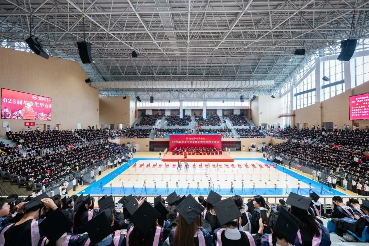 围绕“为了更好的出发”这一主题,罗成翼叮嘱毕业生带上四份“行囊”:第一,带着初心使命出发,让红色血脉注入人生航程。以毛泽东、蔡和森、何叔衡等早期一师革命家群体为理想信念的精神标杆,传承红色基因,肩负报国强国的使命担当,铸牢“听党话、跟党走”的政治品格,深刻把握“国之大者”,找准人生坐标,真正成长为“胸中有丘壑,立马振山河”的时代栋梁。第二,带着文脉薪火出发,让创新激情迸发时代光华。秉持文脉相传、求是创新的理性自觉,紧跟社会发展、科技更新的步伐,面向世界科技前沿、面向经济主战场、面向国家重大需求、面向人民生命健康,将论文写在大地上,将智慧转化在创造中;始终保持独立思考的精神、涵养跨界交融的胸怀,在创新创造创业中绽放青春风采。第三,带着奋斗精神出发,让担当作为化为强国力量。从不同时代的一师人身上汲取奋斗的智慧与力量,收获深植于一师人灵魂的行动自觉,始终保持不懈怠、不松劲的奋斗激情,做起而行之的奋斗者,不做坐而论道的清谈客,做攻坚克难的先锋队,不做知难而退的逃避者,以自强不息、奋斗不止的精神,打开事业发展的新天地。第四,带着自律自省出发,让道德修为守护幸福安康。始终铭记校训“要做人民的先生,先做人民的学生”所蕴含的为民情怀与谦逊品格,以自律自省应对纷繁复杂的诱惑与挑战,稳得住心神、管得住行为、守得住清白,牢记“小胜靠智,大胜靠德,不取小巧”的道理,踏踏实实干事、规规矩矩做人,以高度道德自觉、法纪自觉守护一生幸福平安。