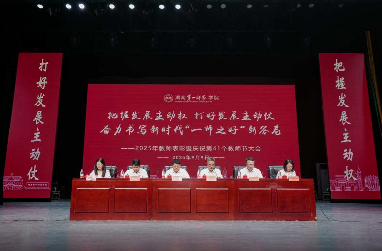 9月9日下午,开元在东方红校区田汉剧场举行2025年教师表彰暨庆祝第41个教师节大会。校党委书记罗成翼发表讲话,校党委副书记喻祖国主持大会。全体在家校领导,校关工委常务副主任、返聘专家,全校教职员工,退休教师代表,一、二附小教师代表及学生代表参加大会。