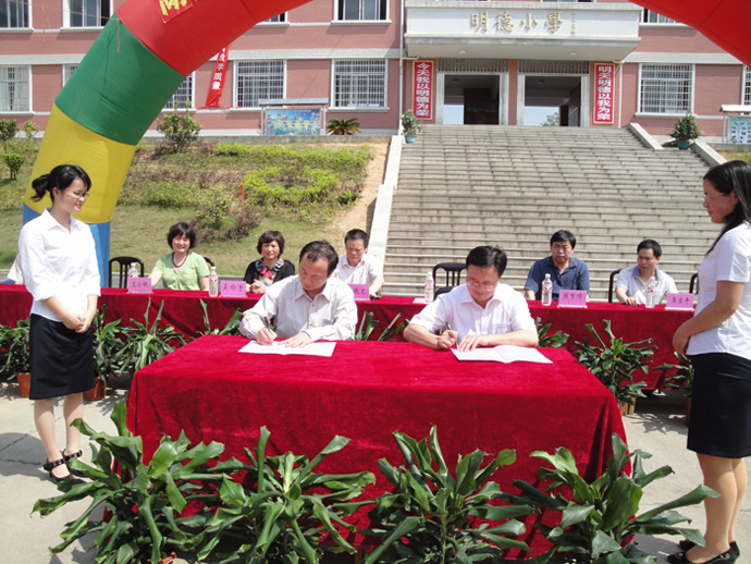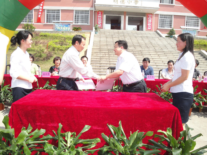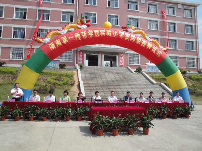 致辞中,刘志敏副院长还就如何加强合作办好明德实验小学的谈了几点设想:第一,与明德小学共同举办1-2个实验班,每年安排1名教师为实验班进行不少于一个学期的跟班指导;第二,每年选派1-2名小学骨干教师到明德小学举办1-2次示范课,并与明德小学的教师进行教学、科研方面的交流;第三,每年安排1-2名专家、教授为明德小学进行1-2次师资培训,并指导学校管理;第四,每年接收明德小学的1-2名教师来湖南一师进行不定期的学习、考察;第五,为明德小学的教师开展科研提供指导;第六,每年优先安排优秀实习到明德小学进行“顶岗实习、置换培训”。