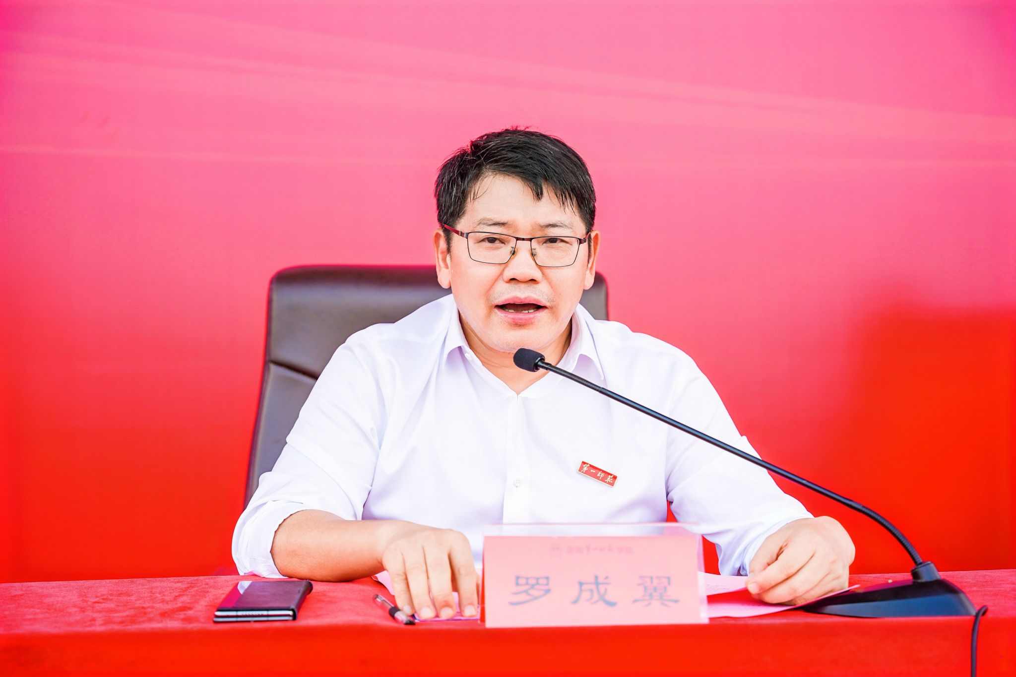 罗成翼在主持大会时对武警湖南总队机动支队承训官兵悉心教导和湖南省军魂国防教育基地教官的大力支持表示感谢,他高度肯定了2025级新生在军训中展现出挺拔军姿和一师学子特有的精气神,出色地完成了“开学第一课”,向学校、家长和自己交了一份满意的答卷,并对同学们提出四点希望:一是赓续红色血脉,厚植家国情怀。从青年毛泽东与第一师范的故事中汲取理想信念、爱国精神、革命情怀、人民立场的丰富“养料”,以当代中国马克思主义、21世纪马克思主义——习近平新时代中国特色社会主义思想武装头脑,厚植爱党、爱国、爱社会主义以及爱校的情感,筑牢永远听党话、跟党走的思想根基。二是潜心勤学善思,做到学思并进。百年前一师“人才井喷”,根源在于师生们将“求学”与“救国”紧密相连,刻苦学习、奋发图强。在朝着第二个百年奋斗目标进军的新征程上,我们也必须把刻苦学习作为成才的本分,主动适应大学学习新特点,充分利用自修时间,自觉养成学习习惯。三是融入实践创新,追求知行合一。既要读懂“有字之书”,也要善读“无字之书”,向实践学习、向人民群众学习、向科技一线学习,不做坐而论道的清谈客,争做起而行之的奋斗者,不做知难而退的逃避者,争做挺膺担当的先锋队,以青春之我、奋斗之我,开启大学生活新篇章。四是紧跟时代步伐,担当强国使命。时代各有不同,青春一脉相承。要自觉对标伟大校友毛主席等老一辈革命家心忧天下、敢为人先的精神,勇立潮头、迎风搏浪,始终与祖国共命运、与时代同步伐、与人民齐奋斗,将青春力量融入强国伟业,争做推进中国式现代化的栋梁材。