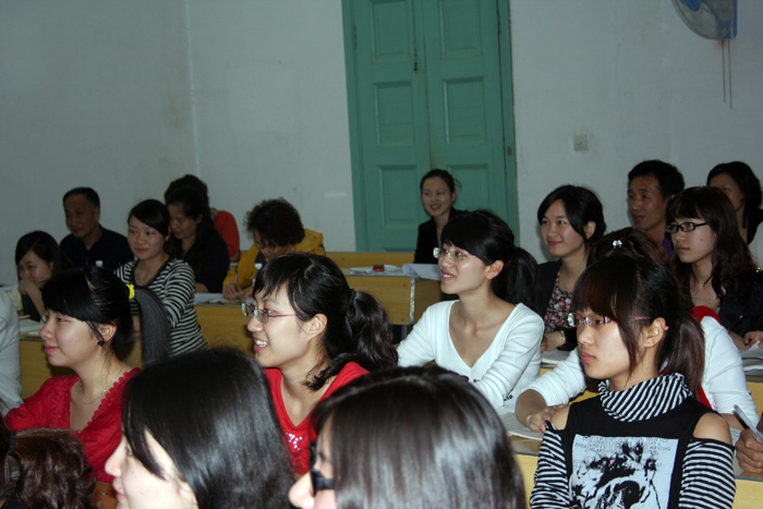 聚精会神听课的评委和学生
