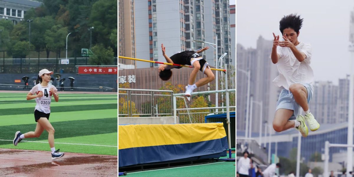 全校共有1409名运动员参加本次田径运动会。运动会设置了短跑、长跑、跳高、跳远、铅球等12项个人项目和迎面接力、跑跨接力、耐力跑、前抛实心球团体赛等4项混合集体项目。赛场上,运动健儿意气风发、勇往直前。中途风雨骤至,细密雨丝打湿眉眼、模糊视线,却浇不灭大家的拼搏热情。运动员们凭借极致专注与强劲爆发力全力冲刺,赢得全场阵阵喝彩。全体裁判员坚守岗位、公正执裁,工作人员与志愿者全程保障、贴心服务,确保了赛事顺利进行。
