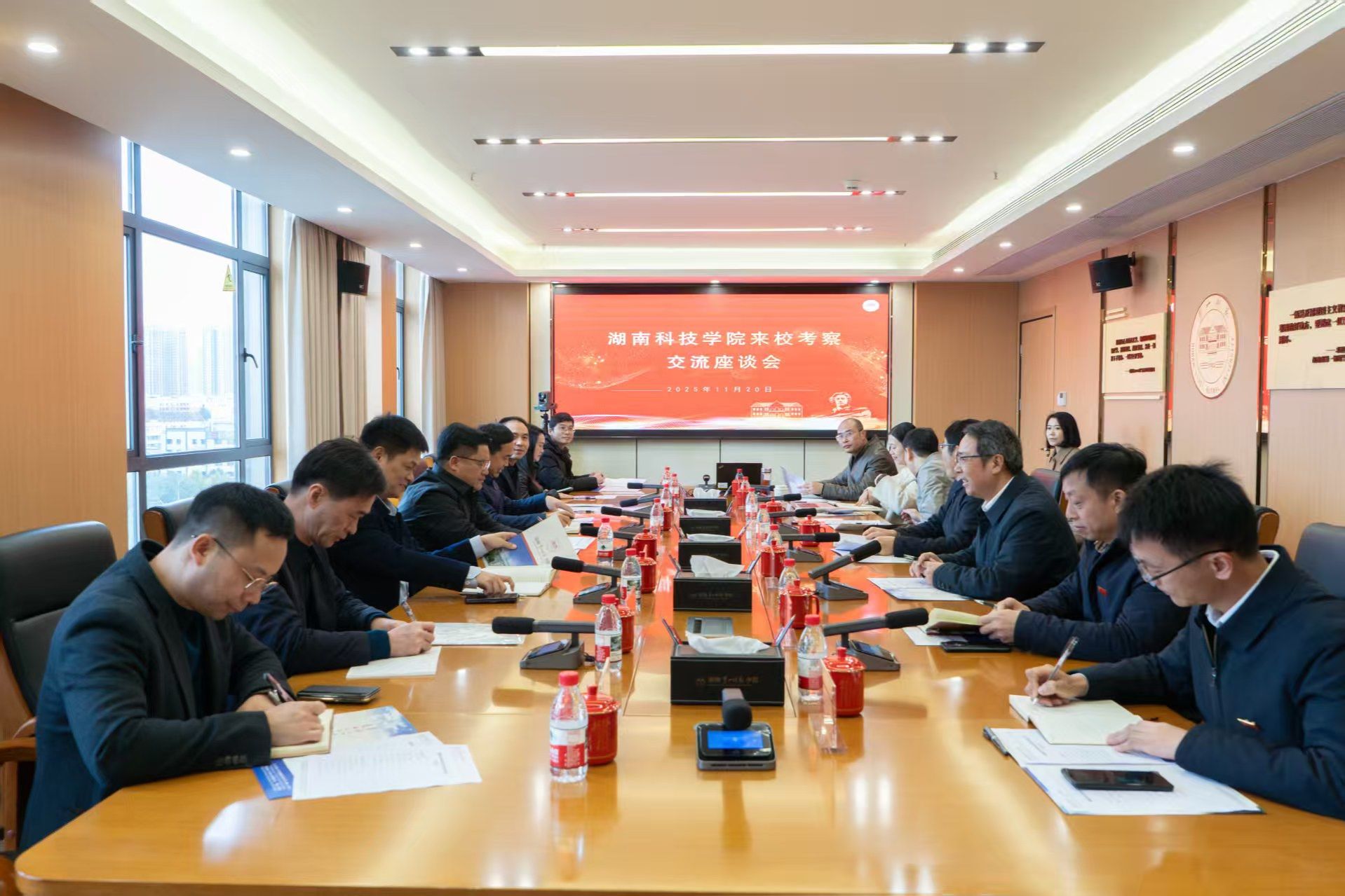 11月20日下午,湖南科技学院党委书记李钢,党委副书记、校长黄创霞一行来校考察交流。校党委书记罗成翼,校党委委员、副校长彭晓辉在东方红校区热情接待考察组一行。双方在百熙楼710会议室举行座谈。会议由彭晓辉主持。