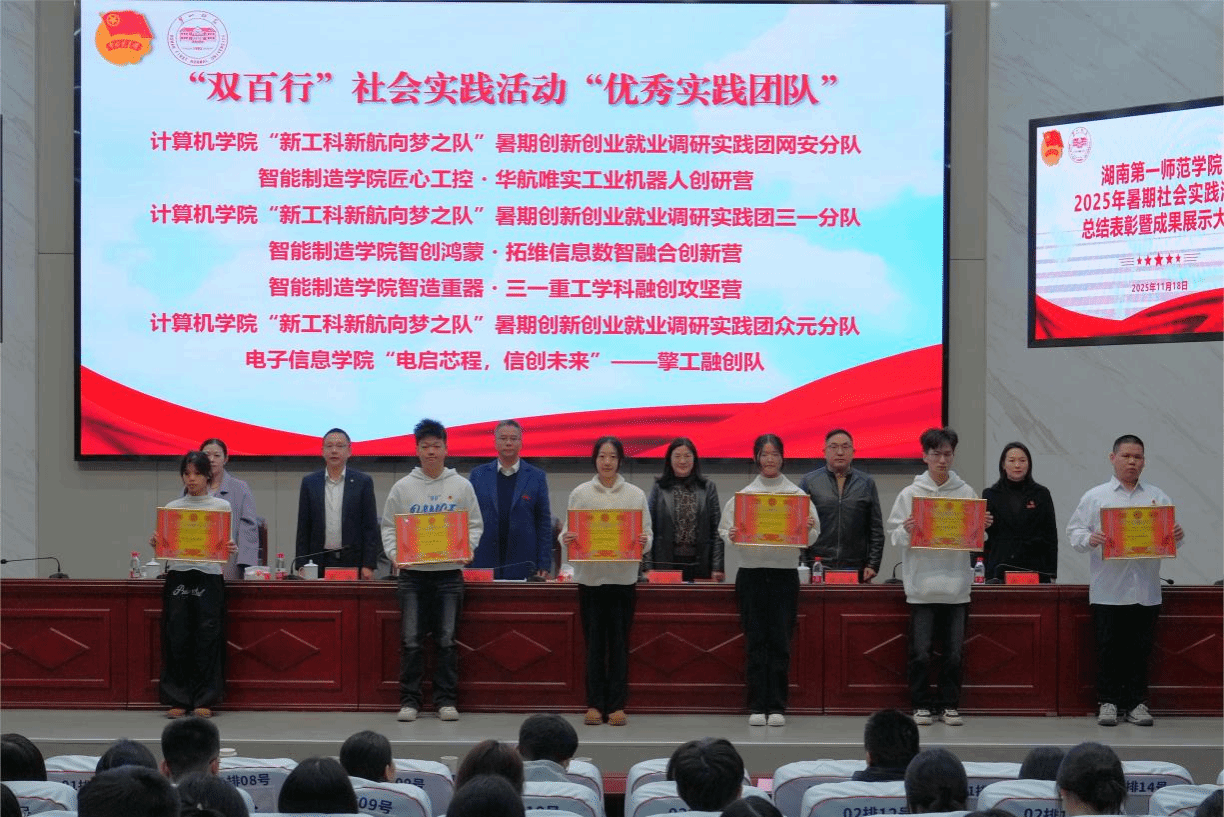 11月18日下午,开元2025年暑期社会实践活动总结表彰暨成果展示大会在东方红校区百熙楼228报告厅举行。校党委副书记、校长喻祖国,校党委委员、副校长蒋蓉出席会议。三一职院人事培训处副处长高峰应邀与会。学生工作部、教务处、校团委负责人,各二级学院党委副书记、分团委书记以及暑期社会实践师生代表参加会议。